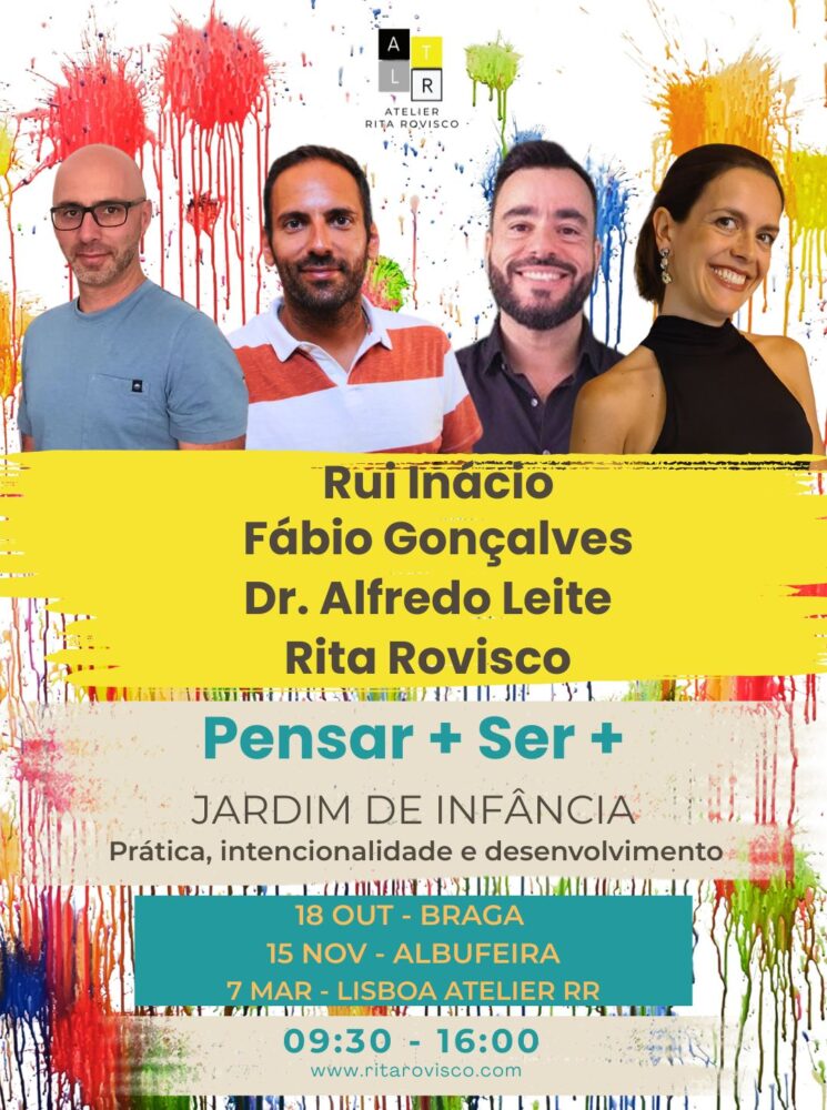 As formações são ministradas por Rita Rovisco, responsável pelo Atelier e Educadora de Infância desde 2005. Mestre em Educação Artística (vertente Artes Plásticas) desde 2016 e formadora certificada pelo Conselho Científico desde 2021, defende que a arte é o que cada um quiser e que a sua expressão deve ser sentida e vivida livremente.